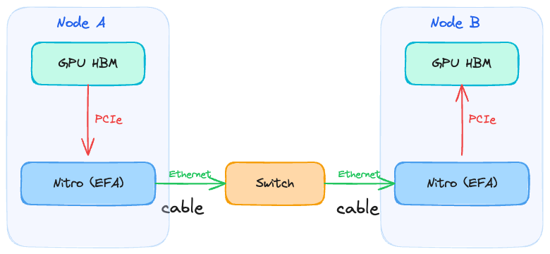EFA (Elastic Fabric Adapter) is a high-performance network interface designed by AWS — think of it as something similar to InfiniBand. It’s available on specific instance types (p4d, p5, p6, etc.) and provides the OS bypass and RDMA capabilities described above.