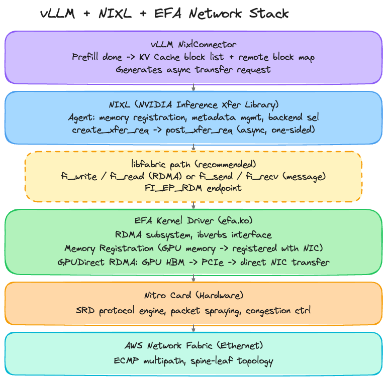 Since my setup was P/D Disagg, I didn’t need NCCL. However, if your model is large enough to require multi-node setup, or for multi-node training, NCCL is necessary — and in EFA environments, aws-ofi-nccl is required.